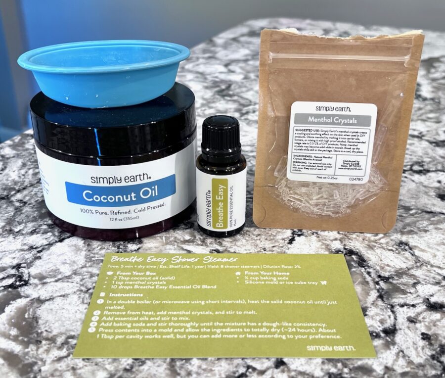 The October 2023 “Home Remedies” themed Simply Earth box included some great (and simple!) recipes to make homemade/natural chest rub, shower steamers, deodorizing spray, and more! As always, the recipes were incredibly easy to follow and took just minutes to complete. 😀 — Remember, for a limited time new subscribers can get a $45 gift card AND a FREE Bonus Box ($50 value!) with coupon code “WENDYROSEFREE“!