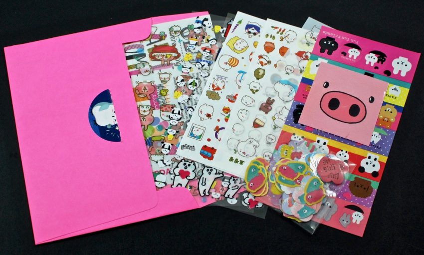 The stickers were all shipped in a bright pink envelope with May’s theme — “Chubby Animals Party” — revealed on the back.