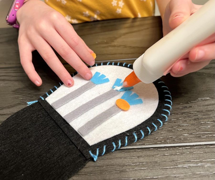 We then decorated the front of the sporran using the smaller self-adhesive felt pieces, which needed a little extra glue to properly stick.